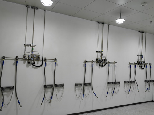 8.氣瓶間內的氣味氣瓶與重壓調低器當中用SS316L低壓低壓金屬質橡膠管進行接無侵入。低壓低壓橡膠管為被動式橡膠管,以做到進行接的不便利性。并自導耐火板鋼纜,預防極致情況發生下,氣瓶閥丟失等后果引致的低壓低壓“抽鞭”意外。重壓調低器與管的進行接途徑為雙環卡套。